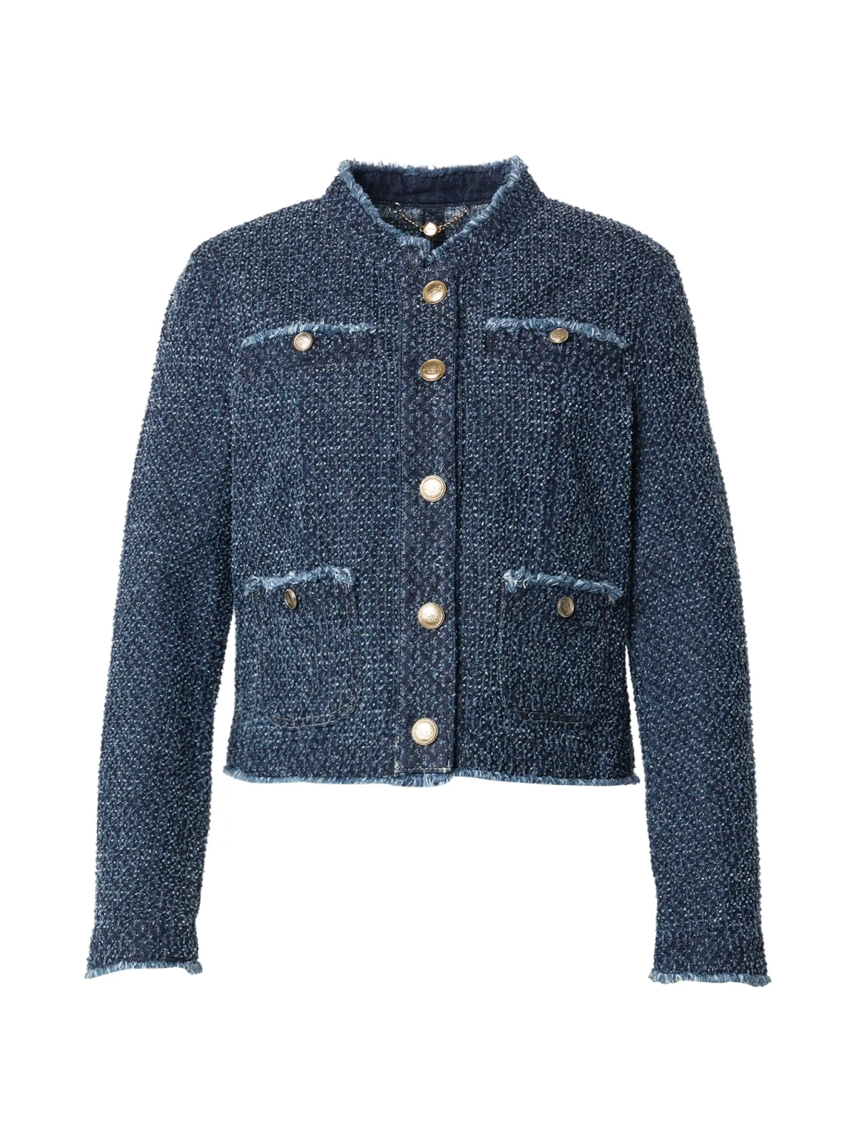 Design: Gefranjerde zoom, Knop placket, Borstzak; Type sluiting: Knoopsluiting; Voering: Niet gevoerd; Materiaal: Bouclé; Motief: Mélange; Extra's: Voelt zacht aan; Pasvorm: Normale pasvorm