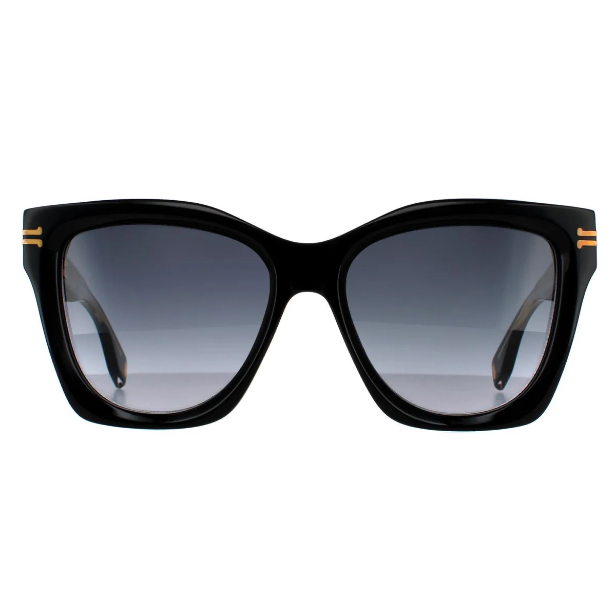 Marc Jacobs zonnebrillen MJ 1000/s 807 9o Black Dark Gray Gradient zijn een stijlvolle vierkante stijl gemaakt van premium en lichtgewicht acetaat. Het Marc Jacobs -logo is aan de bovenkant van het voorkader voor merkherkenning.