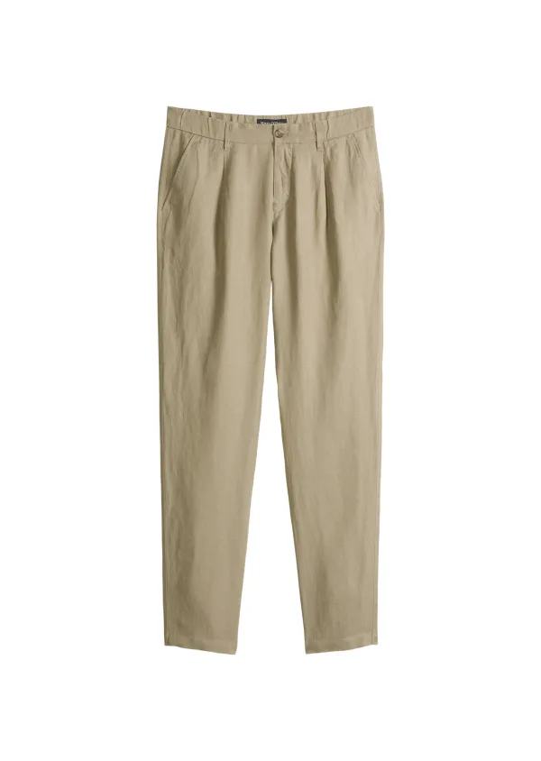 heren linnenbroek van Marc O'Polo;look: effen;Pasvorm: tapered fit;Details: bandplooi;boord: elastisch;Sluiting: Knoop en ritssluiting;Zakken: vooraan zij-steekzakken, achter paspelzakken met knoop;Materiaal: puur linnen