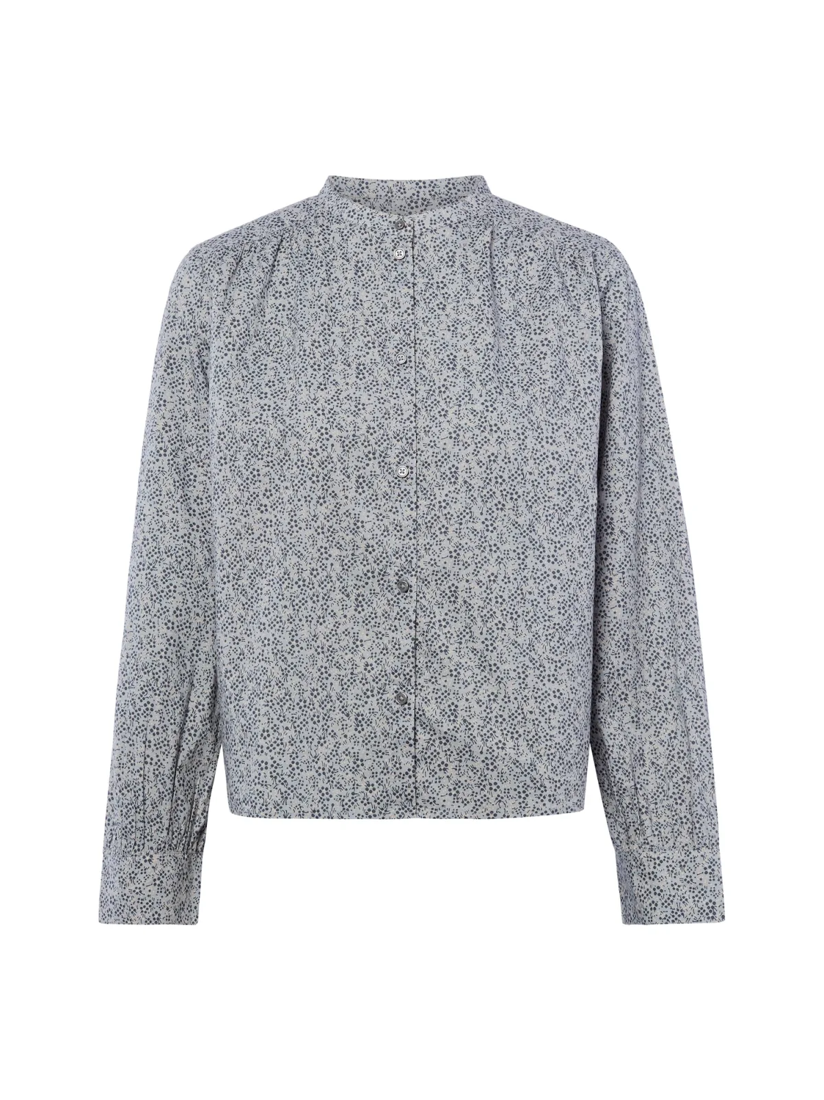 Blouse type: Klassieke blouse; Design: Knop placket; Type sluiting: Knoopsluiting; Materiaal: Katoen; Motief: Bloemenprint; Kraag: Opstaande kraag; Details: Plooien, Gedrapeerd; Extra's: All-over patroon; Pasvorm: Losse pasvorm; Armlengte: Lange mouw; Lengte: Normale lengte