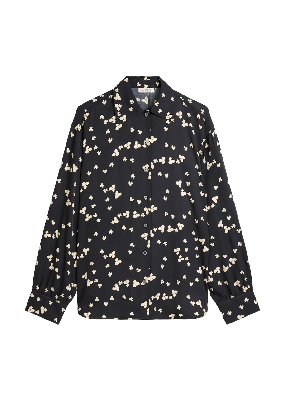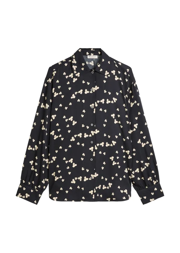 Damesblouse met lange mouwen van Marc O'Polo;Look: effen, all-over motief;Pasvorm: Oversized;Kraagmodel: Overhemdkraag;Motief: bloemen;Applicatie: Labelstitching;Sluiting: enkele knoopsluiting;Mouwvorm: lange mouwen;Mouwboord: Manchet;Rompzoom: afgerond, asymmetrisch, met zijsplitten;Materiaalverwerking: Twill;Materiaal: pure viscose