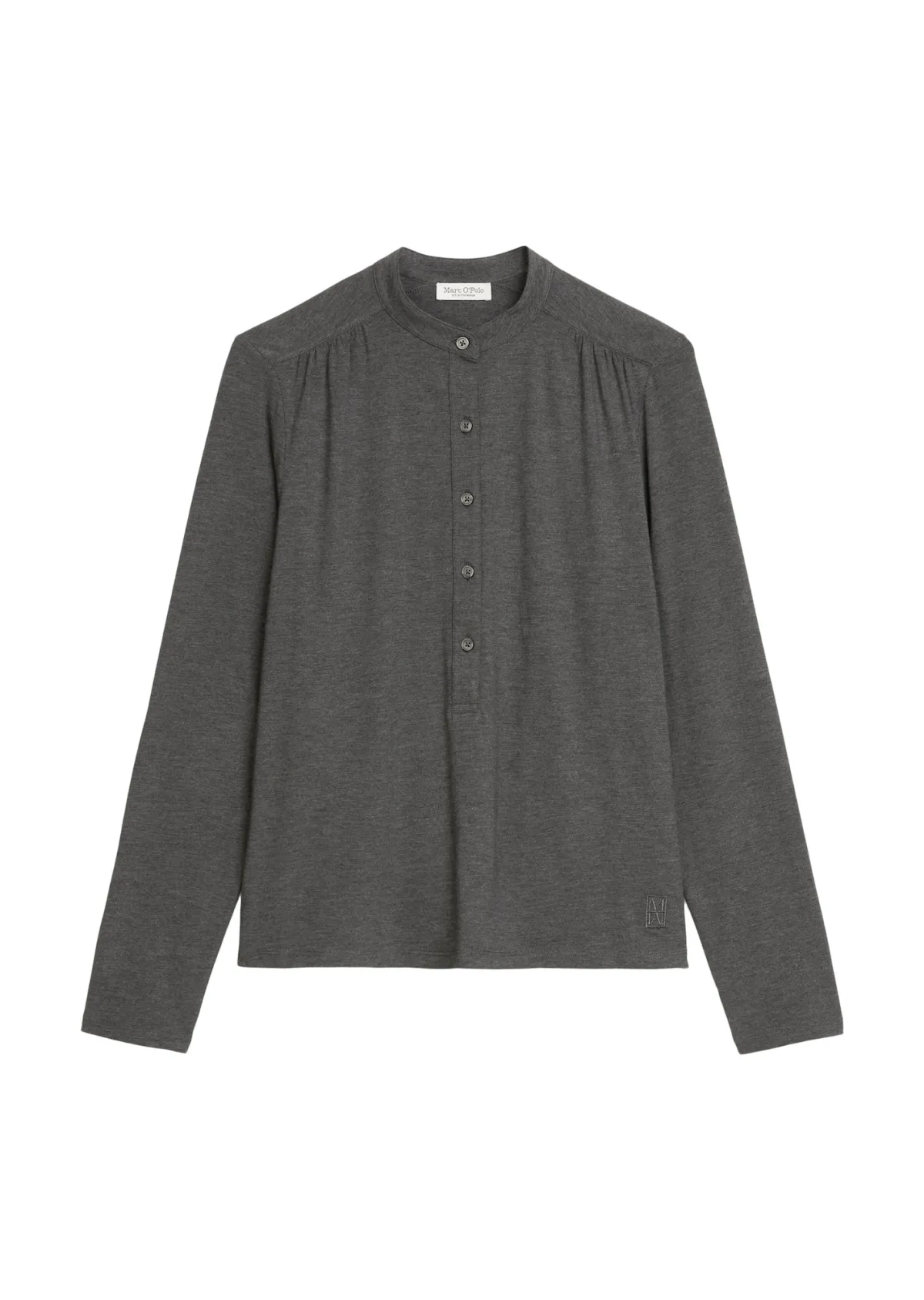 Blouse type: Klassieke blouse; Design: Gevoerde zoom/rand, Knop placket; Type sluiting: Knoopsluiting; Materiaal: Jersey; Halstype: Boothals; Motief: Mélange; Kraag: Zonder kraag; Extra's: Op staal naden, Voelt zacht aan; Pasvorm: Losse pasvorm; Armlengte: Lange mouw; Lengte: Normale lengte