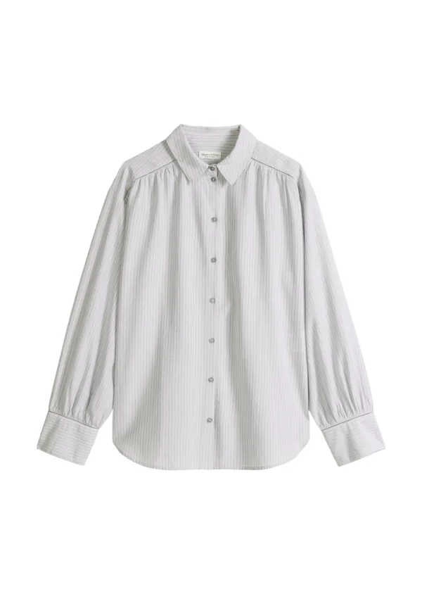 Blouse type: Klassieke blouse; Design: Rechte manchetten, Knop placket; Type sluiting: Knoopsluiting; Materiaal: Katoen; Motief: Gestreept; Kraag: Kentkraag; Details: Gedrapeerd; Extra's: Op staal naden; Pasvorm: Losse pasvorm; Armlengte: Lange mouw; Lengte: Normale lengte
