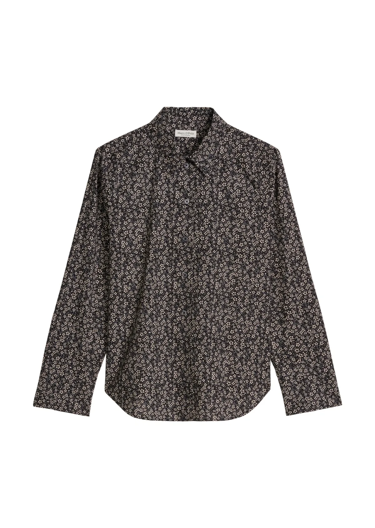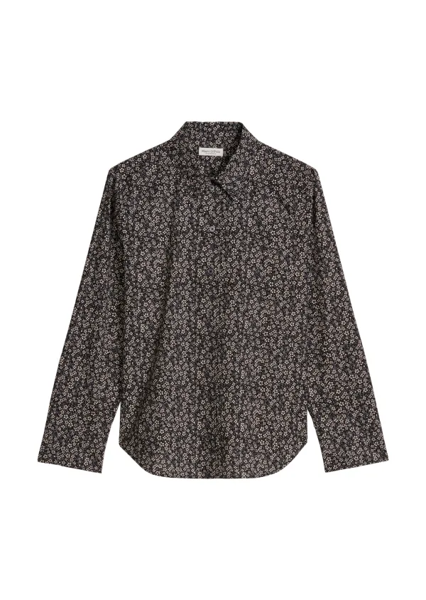 Dames Overhemdblouse van Marc O'Polo;Look: All-over motief;Pasvorm: regular fit;kraagmodel: overhemdkraag;Details: Achterpas met Cacharel-plooi;Sluiting: enkelrijige knoopsluiting;Mouwvorm: lange mouw;mouwboord: Manchet;Rompzoom: licht afgerond;Materiaalverwerking: papertouch-popeline;Materiaal: puur katoen