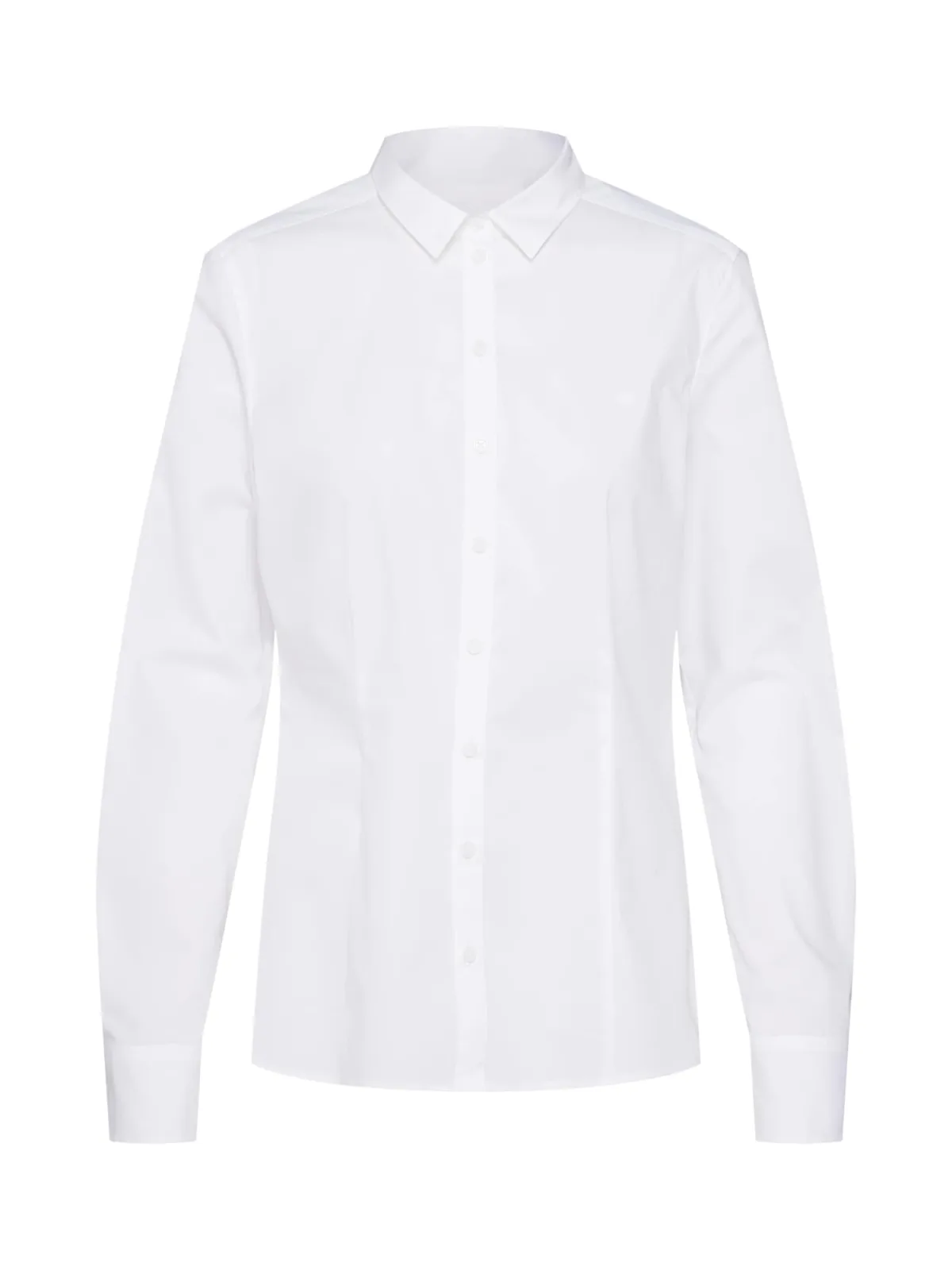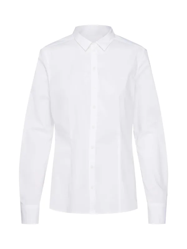 Overhemdblouse van MARC O'POLO voor dames;Katoenmix;Getailleerd model;Platte kraag;Knoopsluiting;Lange mouwen met 1-knoopsmanchet;Geborduurd logo op de borst;Ruglengte bij maat 36: 65 cm;Mouwlengte bij maat 36: 60 cm