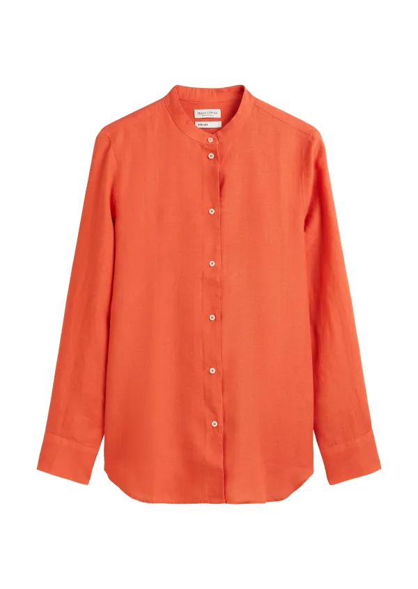 Blouse type: Klassieke blouse; Design: 1-knoops manchetten, Ronde zoom; Type sluiting: Knoopsluiting; Materiaal: Linnen; Motief: Effen; Kraag: Opstaande kraag; Details: Plooien; Extra's: Op staal naden, Lichte stof; Pasvorm: Normale pasvorm; Armlengte: Lange mouw; Lengte: Lange pasvorm