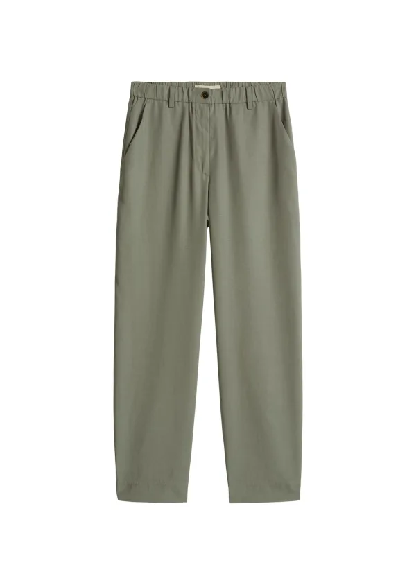 Design: Ritssluiting, Zakken aan de zijkant; Type sluiting: Knoopsluiting; Materiaal: Lyocell; Motief: Effen; Details: Gedrapeerd; Extra's: Op staal naden, Riemlussen; Lengte: 7/8 lengte; Pasvorm: Loosefit; Taillehoogte: Mid waist