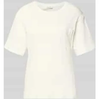 Dames T-shirt van Marc O'Polo;look: effen;pasvorm: comfort fit;Applicatie: labelprint;hals: ronde hals;mouwvorm: korte mouw;Mouwboord: geribd;rompzoom: geribd;Tassen: borstzak;materiaalverwerking: fijngebreid;Materiaal: puur katoen