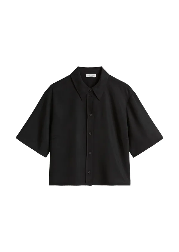 Blouse type: Klassieke blouse; Design: Knop placket, Brede mouwopeningen; Type sluiting: Knoopsluiting; Materiaal: Lyocell; Motief: Effen; Kraag: Kentkraag; Extra's: Label patch/label flag, Op staal naden; Pasvorm: Losse pasvorm; Armlengte: Halve mouw; Lengte: Korte pasvorm