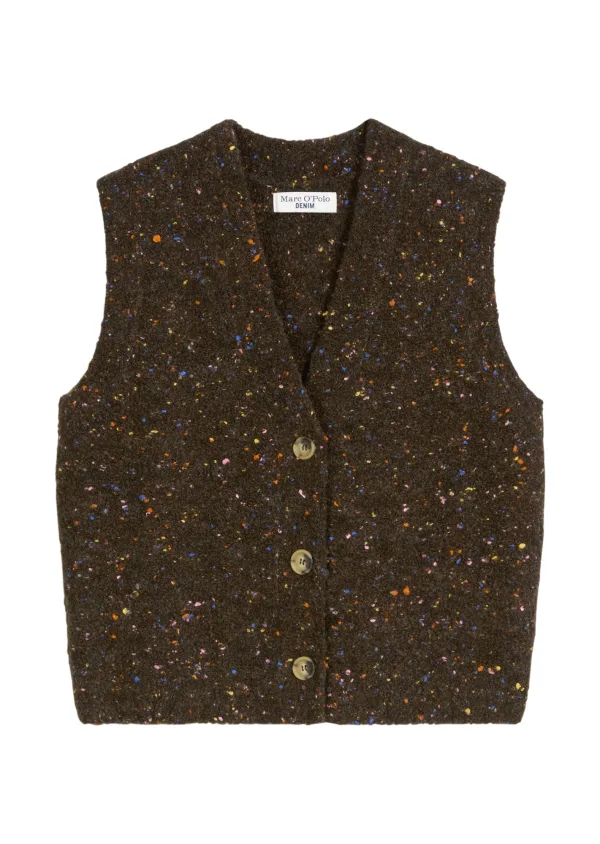 Design: Geribbelde kraag, Geribd ceintuurtje; Type sluiting: Knoopsluiting; Materiaal: Knitwear; Halstype: V-hals; Motief: Mélange; Extra's: Fully fashioned, Scheerwol; Pasvorm: Normale pasvorm; Armlengte: Mouwloos; Lengte: Normale lengte