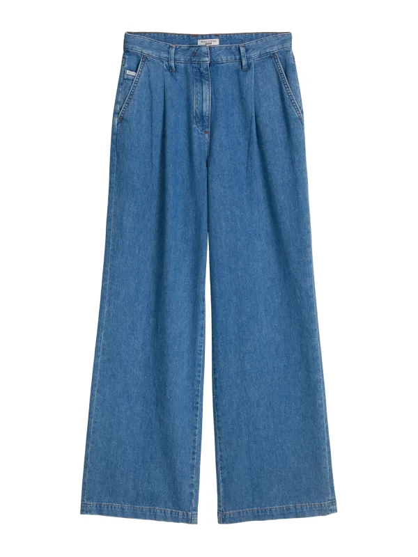 Design: Gevoerde zoom/rand, Verborgen rits, Achterzak, Zakken aan de zijkant, Haaksluiting; Type sluiting: Ritssluiting; Materiaal: Denim; Motief: Effen; Details: Gedrapeerd; Extra's: Contrasterende naden, Label patch/label flag, Vaste grip, Riemlussen; Wassing: Blauw denim; Lengte: Lang/maxi; Pasvorm: Wide leg; Taillehoogte: High waist