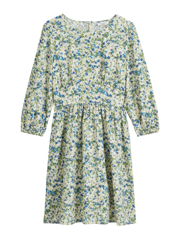Design: Gevoerde zoom/rand, Keyholesluiting; Type sluiting: Knoopsluiting; Materiaal: Viscose; Halstype: Ronde hals; Motief: Bloemenprint; Details: Gedrapeerd; Extra's: All-over patroon, Lichte stof; Lengte: Knielengte; Snit: Getailleerd; Pasvorm: Aansluitende pasvorm; Armlengte: Driekwart mouw