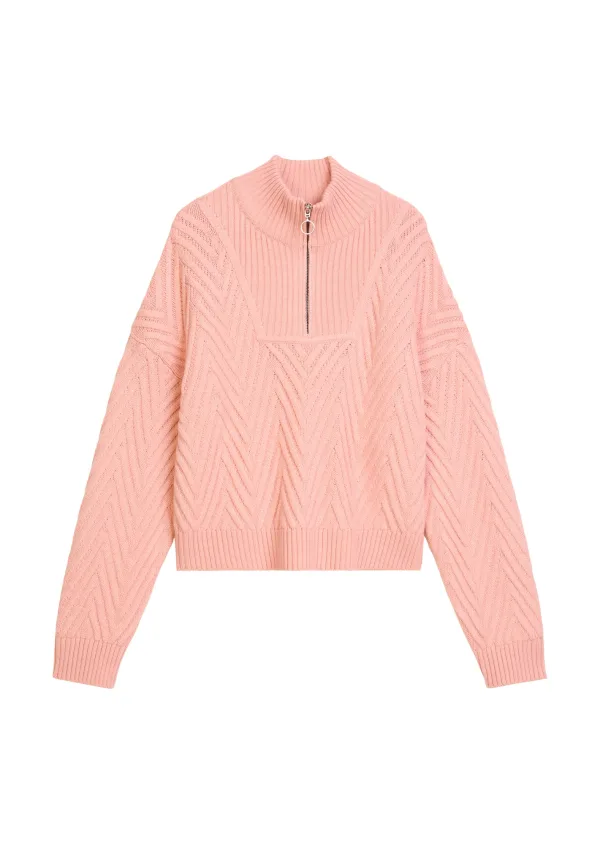 Design: Geribbelde kraag, Geribd ceintuurtje, Halve rits; Type sluiting: Knoopsluiting; Materiaal: Knitwear; Halstype: Opstaande kraag; Extra's: Gestructureerd oppervlak, Voelt zacht aan; Pasvorm: Losse pasvorm; Armlengte: Lange mouw; Lengte: Normale lengte