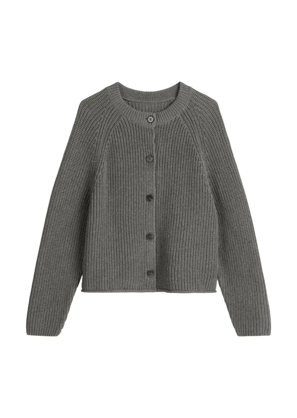 Design: Geribbeld gebreid, Brede mouwopeningen; Type sluiting: Knoopsluiting; Materiaal: Knitwear; Halstype: Ronde hals; Motief: Effen; Extra's: Label patch/label flag, Voelt zacht aan; Pasvorm: Normale pasvorm; Armlengte: Lange mouw; Lengte: Normale lengte