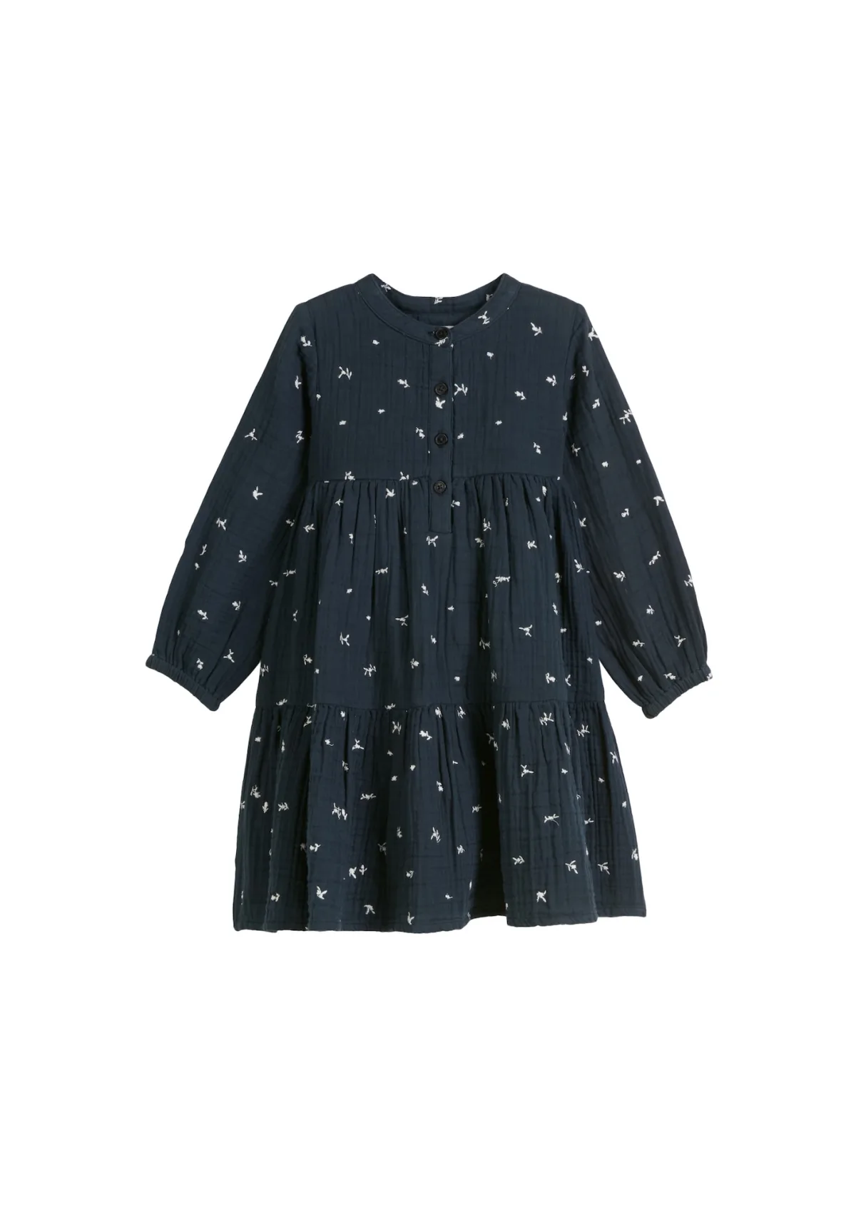 Type sluiting: Knoopsluiting; Materiaal: Viscose; Halstype: Ronde hals; Soort bandjes: Normale bandjes; Details: Volant, Gedrapeerd; Lengte: Knielengte; Pasvorm: Losse pasvorm; Armlengte: Lange mouw