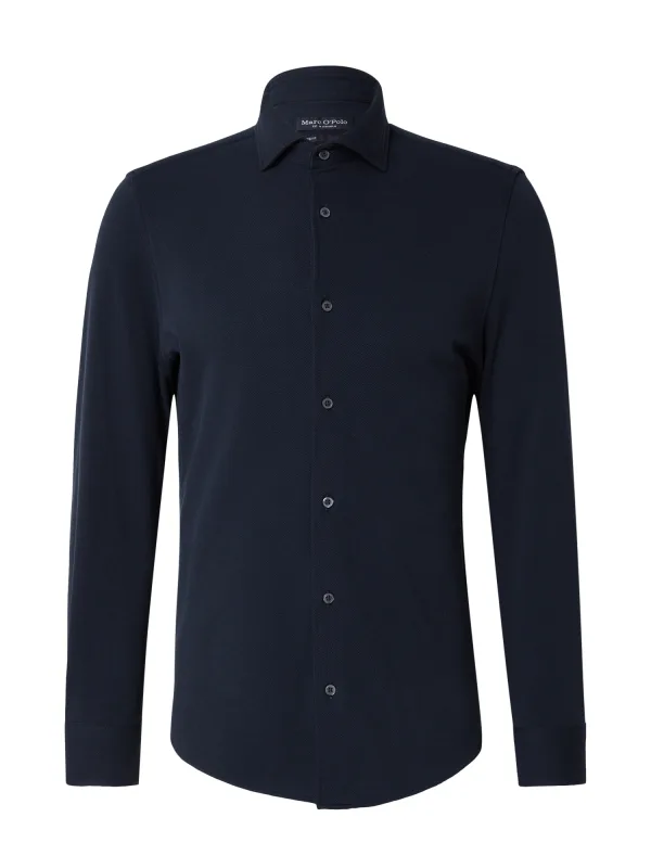 Heren vrijetijdsoverhemd van Marc O'Polo;Look: effen;Pasvorm: shaped fit;Overhemdkraag: Cutaway-kraag;Knoopsluiting: doorlopend;Details: Achterpas;Mouwvorm: lange mouw;Mouwboord: Manchet;Manchettensoort: 1-knoopmanchet, wijdte verstelbaar, rond;Materiaalverwerking: Piqué;Materiaal: puur katoen