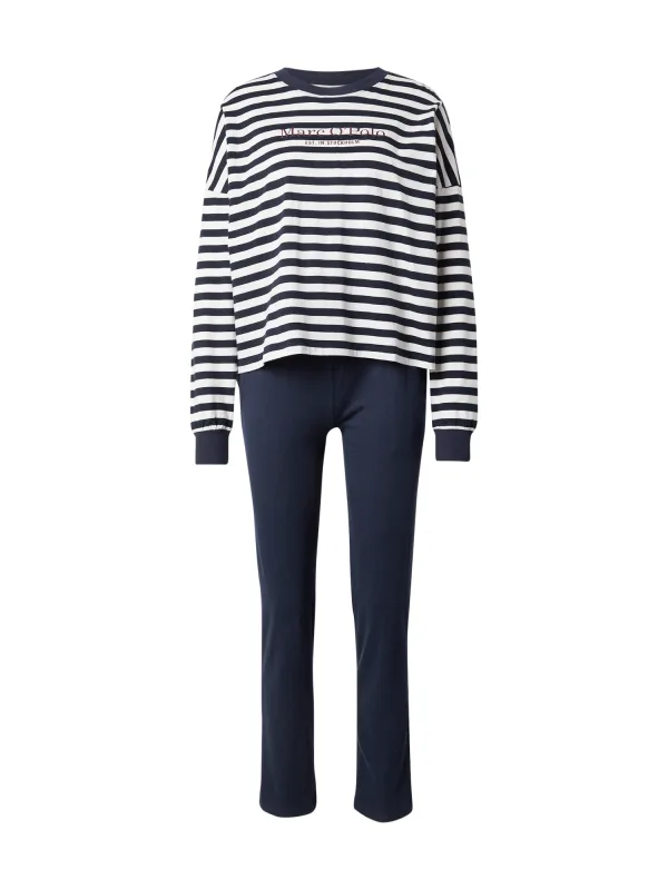 Marc O’Polo Pyjama ‘Mix & Match’ donkerblauw / wit