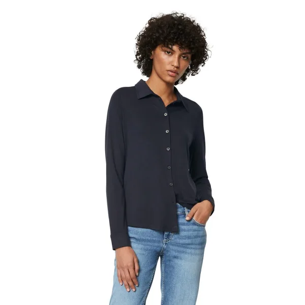 Overhemdblouse van Marc O’Polo voor dames;Mix van viscose en elastaan;Recht model;Effen design;Platte kraag;Doorknoopsluiting;Design met lange mouwen;Ruglengte bij maat S: 63 cm