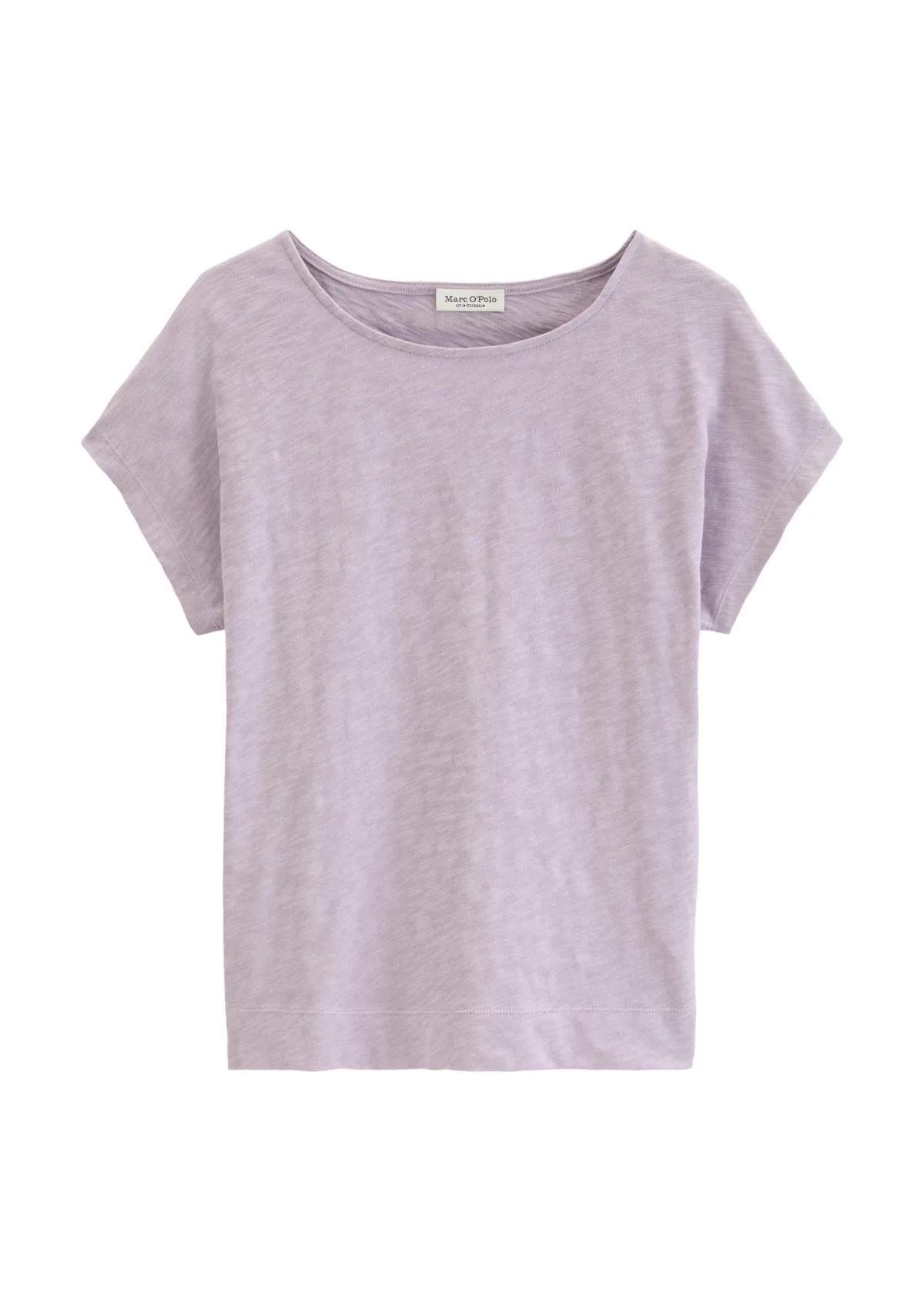 Dames T-shirt van Marc O'Polo;look: mêlee;Pasvorm: relaxed fit;Applicatie: logoprint;hals: boothals;mouwvorm: korte mouw;rompzoom: met zij-splitten;Materiaal: puur katoen