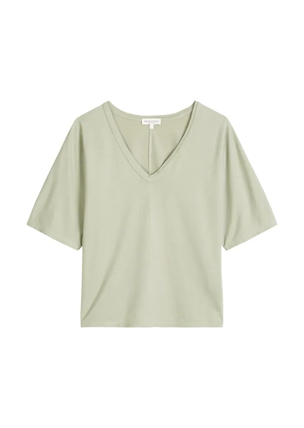 Design: Gevoerde zoom/rand; Materiaal: Jersey; Halstype: V-hals; Motief: Effen; Extra's: Op staal naden; Pasvorm: Losse pasvorm; Armlengte: Halve mouw; Lengte: Normale lengte