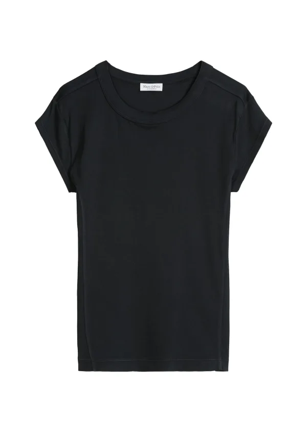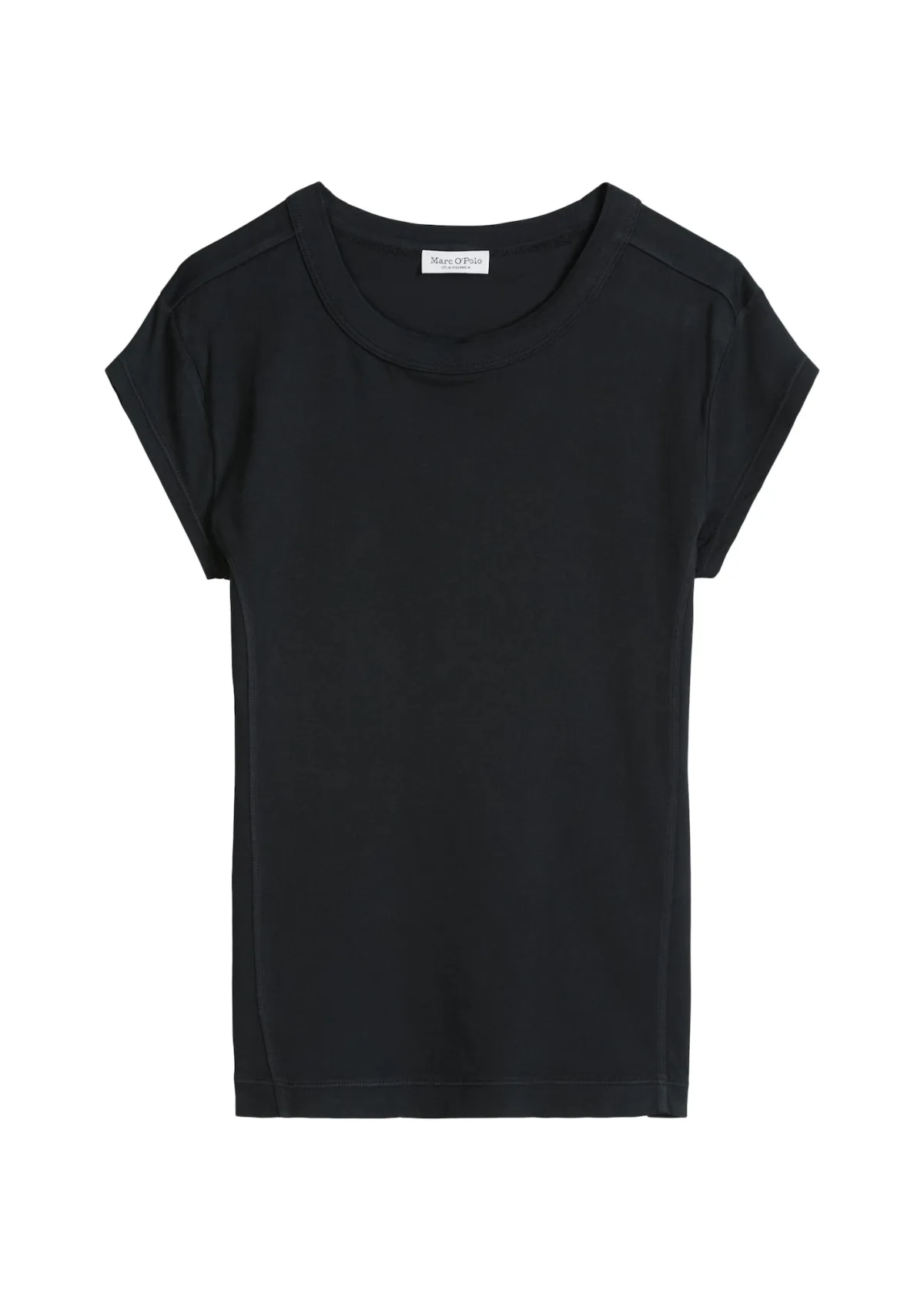 Dames T-shirt van Marc O'Polo;look: effen;pasvorm: slim fit;Applicatie: shaping-naden, labelprint;hals: ronde hals;mouwvorm: korte mouw;materiaalverwerking: jersey;Materiaal: puur katoen