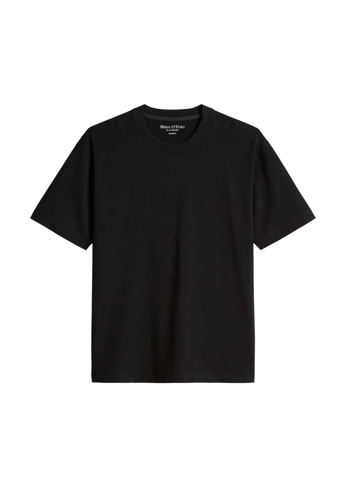 heren T-shirt van Marc O'Polo;look: effen;Pasvorm: relaxed fit;Applicatie: Labelpatch;hals: ronde hals;mouwvorm: korte mouw;Mouweinde: recht;Materiaalverwerking: fijnrib;Materiaal: puur katoen