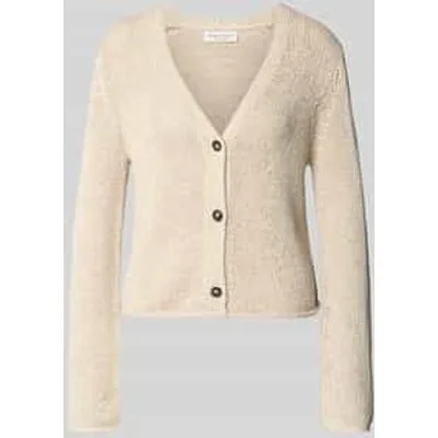 Dames gebreid jack van Marc O'Polo;look: effen;pasvorm: slim fit;Sluiting: enkelrijige knoopsluiting;hals: diepe V-hals;Mouwvorm: lange mouw;Mouwboord: rolzoom;rompzoom: rolzoom;materiaalverwerking: knitwear;Materiaal: katoenmix
