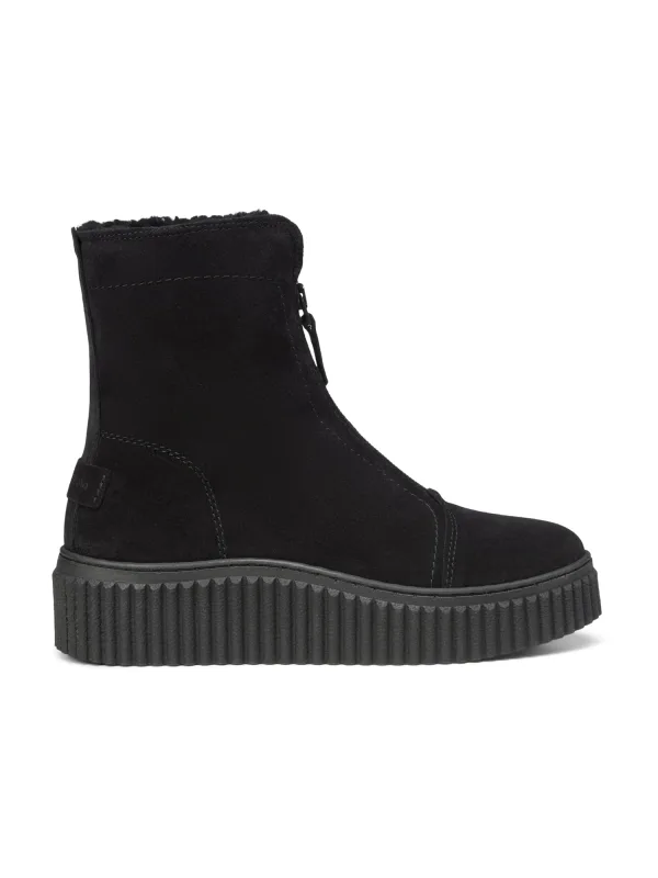 Design: Profielzolen, Versterkte hak; Type sluiting: Ritssluiting; Type hak: Sleehak; Materiaal: Leer; Motief: Effen; Plateau: Met plateau; Materiaal: Suède; Schoenneus: Ronde neus; Extra's: Label patch/label flag, Flexibele zool; Voering: Warm gevoerd; Hakhoogte: Middelhoge hak (3-7 cm)
