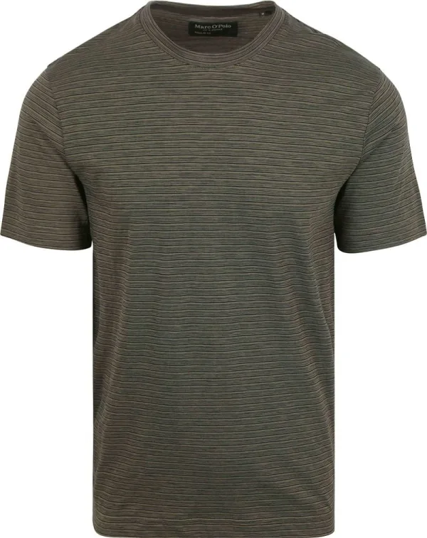Marc O’Polo T-shirt Slub Stripes Dark Green Prijzen