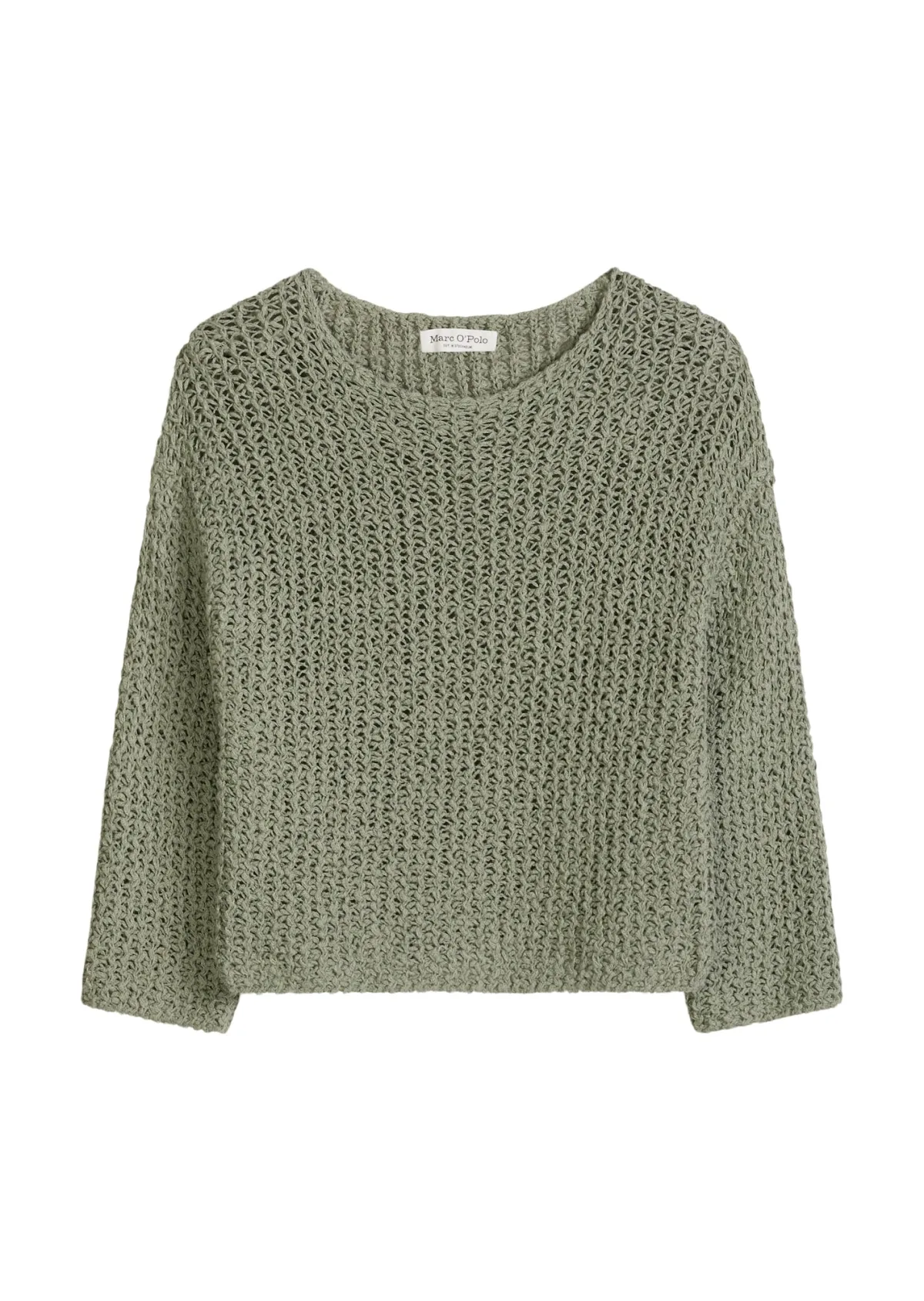 dames pullover van Marc O'Polo;look: effen;Pasvorm: relaxed fit;Details: overlappende schouders;hals: ronde hals;Mouwvorm: lange mouw;materiaalverwerking: grof tricot;Materiaal: katoenmix