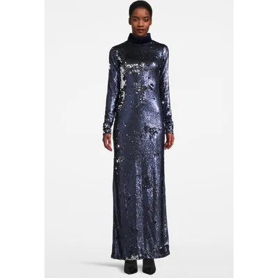 Marcell von Berlin Women‘s Maxi Sequin Dress With High Collar Navy, Silver
