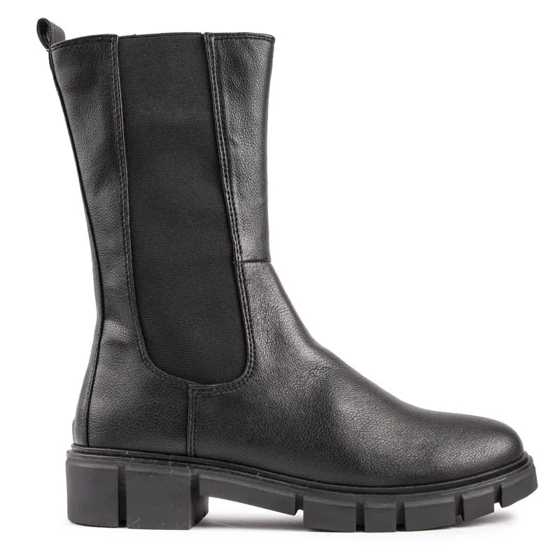 Een robuuste en stijlvolle laars voor het nieuwe seizoen. met de Marco Tozzi 25410-dameslaars omarm je de stad en het platteland op een modieuze manier. Het strakke zwarte lederlook silhouet is volledig gevoerd. heeft lange elastische inzetstukken en een comfortabele pasvorm.