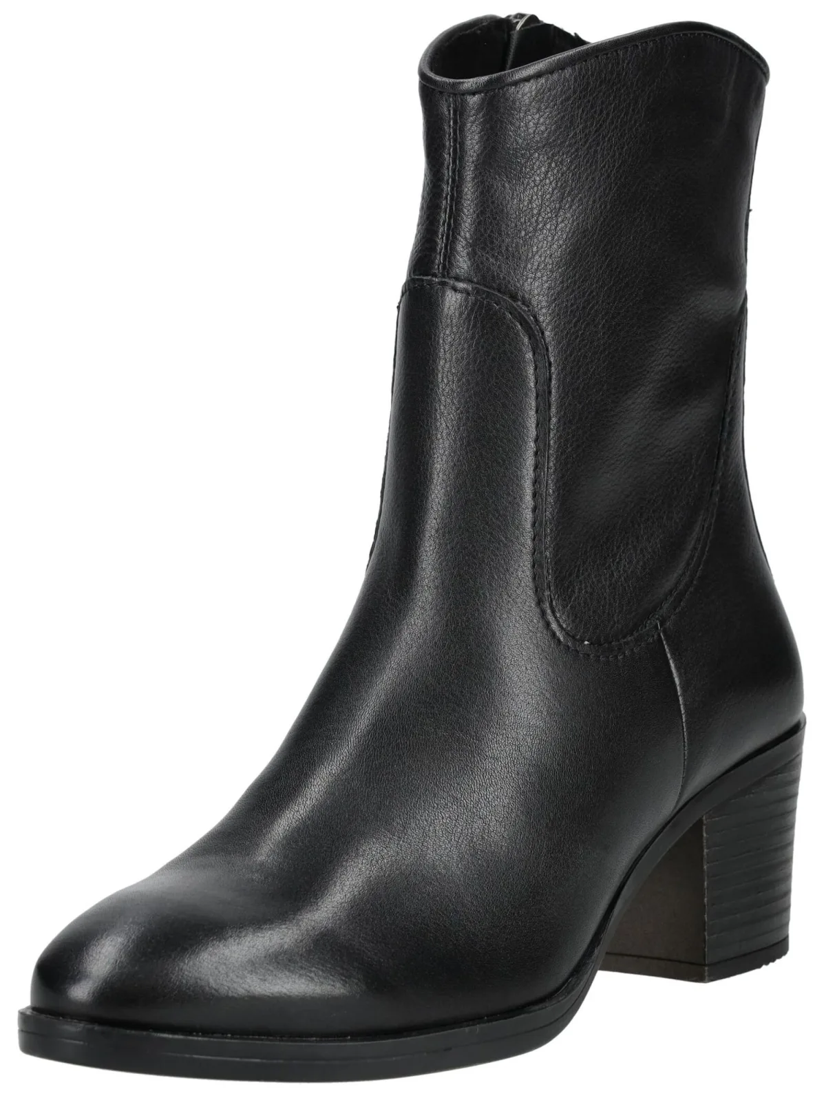 Design: Enkelhoog; Type sluiting: Ritssluiting; Type hak: Blokhak; Materiaal: Leer; Motief: Effen; Materiaal: Glad leer; Schoenneus: Ronde neus; Extra’s: Flexibele zool; Hakhoogte: Middelhoge hak (3-7 cm)