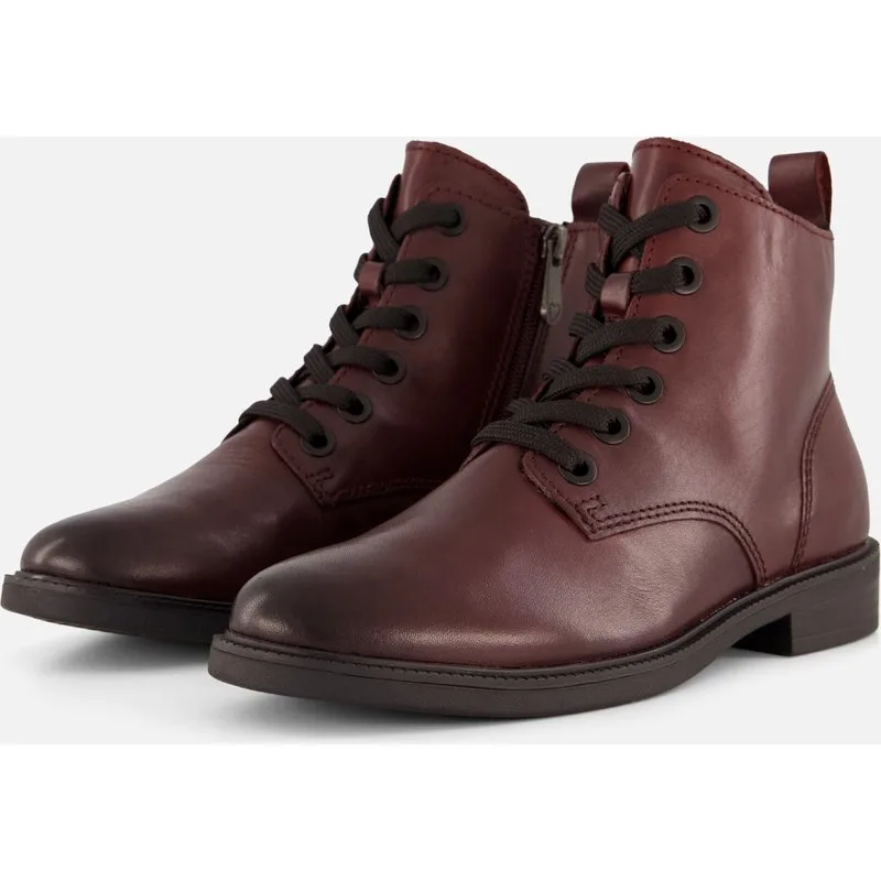 Deze bordeaux Marco Tozzi veterboots zijn gemaakt van synthetisch materiaal. De voering en comfortabele binnenzool zijn gemaakt van textiel voor een aangenaam gevoel. Door middel van veters, trek je de boots gemakkelijk aan en uit. De zool is gemaakt van rubber en heeft een dikte van 3 centimeter. Combineer deze boots met een strakke jeans, een rokje of lange jurk.