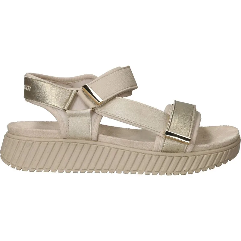 Deze MARCO TOZZI Sandalen zijn voor Dames in de kleur Goud. De schoenen zijn gemaakt van het materiaal Kunstleer;Textiel en de voering is gemaakt van . De voetbreedte van de schoenen is G - normaal.
