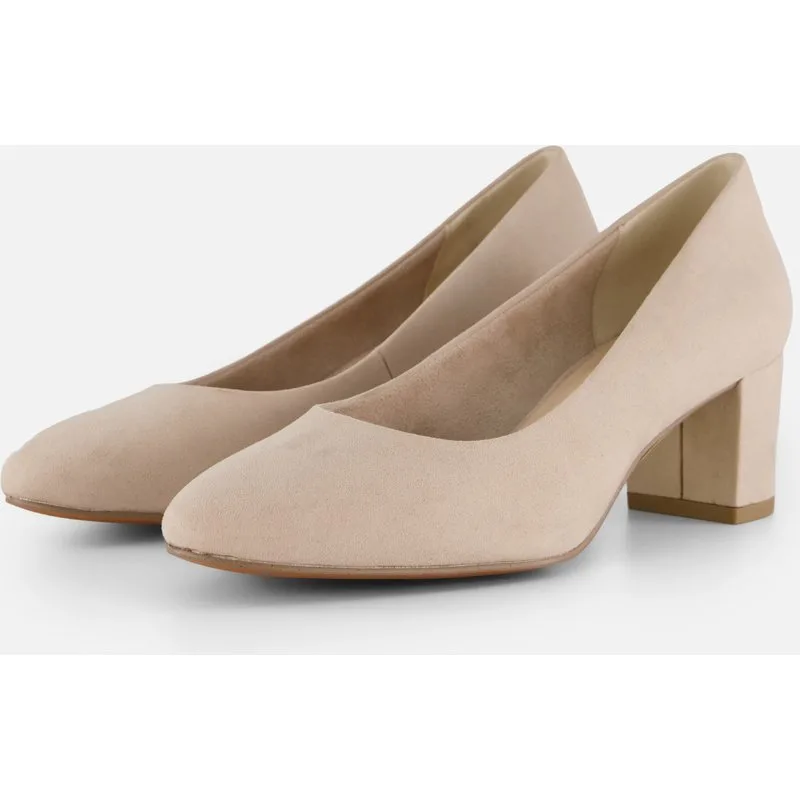 De Tan pumps van Tamaris voor dames geven iedere outfit een elegante uitstraling. Deze beige pump heeft een verfijnde, minimalistische look en staat op een stabiele blokhak van 6 cm die zorgt voor een vrouwelijke en stevige pasvorm. De Touch-it binnenzool vormt zich naar je voet en biedt een zacht, dempend gevoel bij elke stap, waardoor deze damesschoen ideaal is voor zowel een werkdag als een nette gelegenheid.