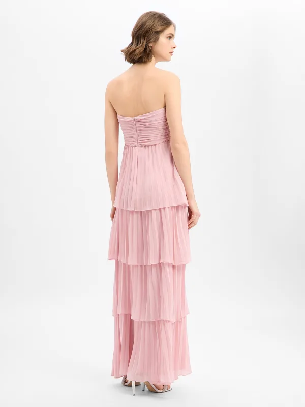 Design: Rug rits; Motief: Effen; Soort bandjes: Bandeau; Details: Volant, Gedrapeerd; Extra's: Op staal naden; Lengte: Lang/maxi; Snit: Getailleerd; Pasvorm: Normale pasvorm; Armlengte: Mouwloos