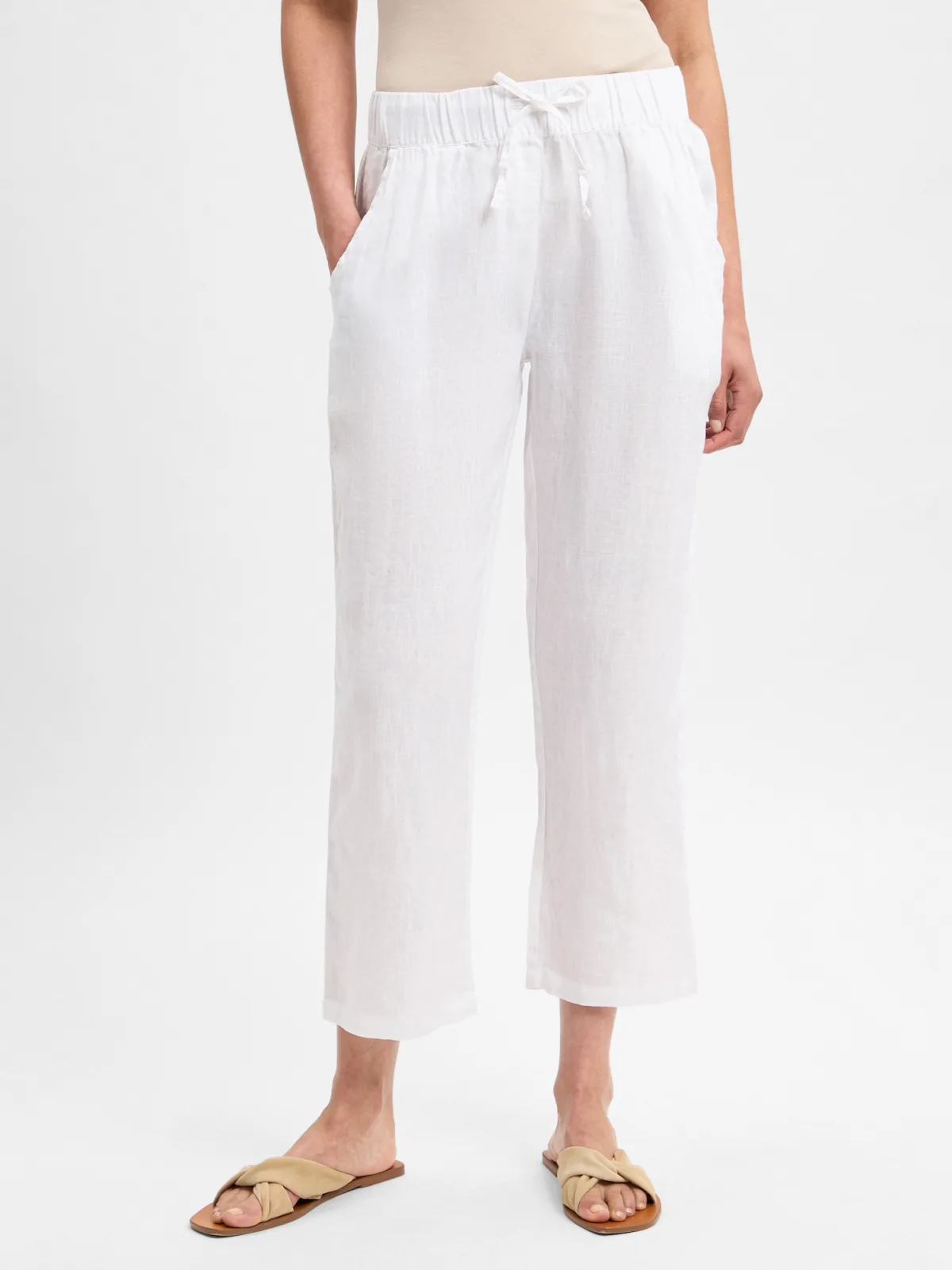 Design: Gevoerde zoom/rand, Taille met trekkoord, Elastische taille/zoom, Achterzak, Zakken aan de zijkant; Materiaal: Linnen; Motief: Effen; Details: Gedrapeerd; Extra's: Op staal naden; Lengte: 7/8 lengte; Pasvorm: Loosefit; Taillehoogte: Mid waist
