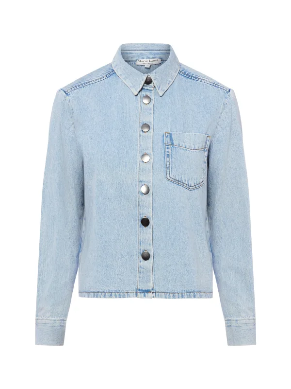 Blouse type: Klassieke blouse; Design: Drukknopsluiting, 1-knoops manchetten, Borstzak; Type sluiting: Drukknoop; Materiaal: Denim; Motief: Effen; Kraag: Kentkraag; Extra's: Gewassen effect; Pasvorm: Normale pasvorm; Armlengte: Lange mouw; Lengte: Normale lengte