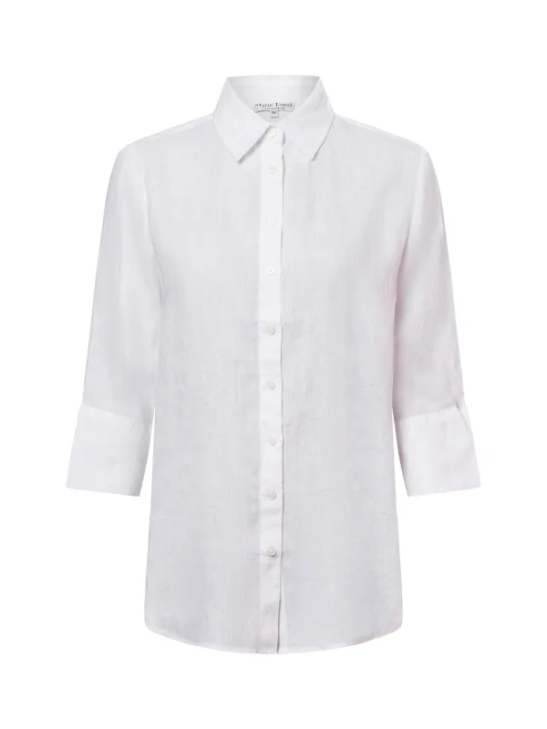 Blouse type: Klassieke blouse; Design: Knop placket; Type sluiting: Knoopsluiting; Materiaal: Linnen; Motief: Effen; Kraag: Kentkraag; Details: Plooien; Extra's: Op staal naden; Pasvorm: Losse pasvorm; Armlengte: Driekwart mouw; Lengte: Normale lengte