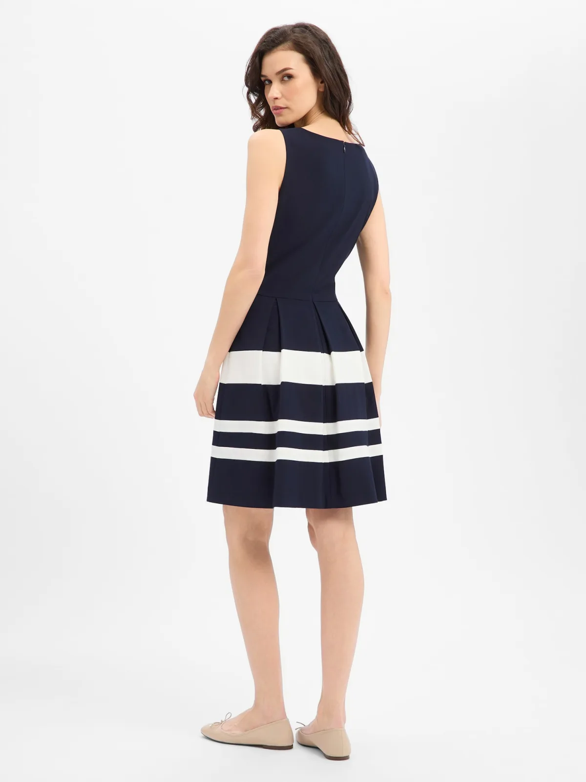 Halstype: Ronde hals; Motief: Gestreept; Soort bandjes: Brede bandjes; Lengte: Knielengte; Pasvorm: Normale pasvorm; Armlengte: Mouwloos