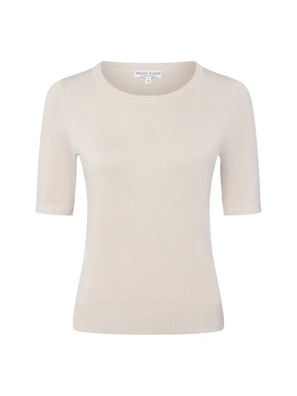 Design: Geribbelde kraag, Geribd ceintuurtje; Materiaal: Knitwear; Halstype: Ronde hals; Motief: Effen; Extra's: Op staal naden; Pasvorm: Normale pasvorm; Armlengte: Halve mouw; Lengte: Normale lengte