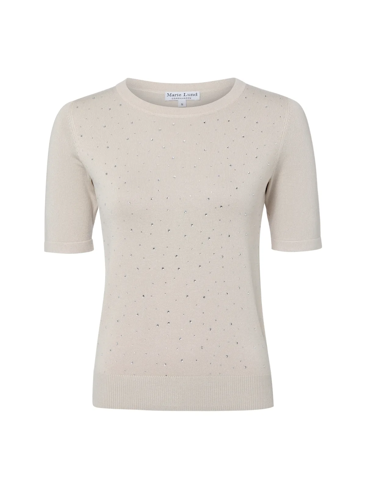 Design: Gevoerde zoom/rand; Materiaal: Knitwear; Halstype: Ronde hals; Motief: Effen; Details: Sierstenen; Extra's: Op staal naden; Pasvorm: Slanke pasvorm; Armlengte: Halve mouw; Lengte: Normale lengte