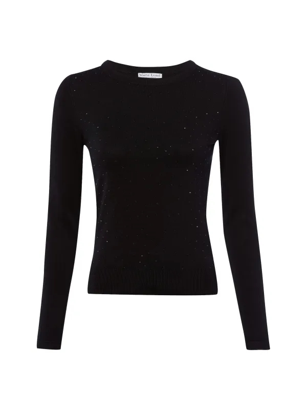 Design: Rechte zoom; Materiaal: Knitwear; Halstype: Ronde hals; Motief: Effen; Details: Sierstenen; Extra's: Op staal naden; Pasvorm: Normale pasvorm; Armlengte: Lange mouw; Lengte: Normale lengte
