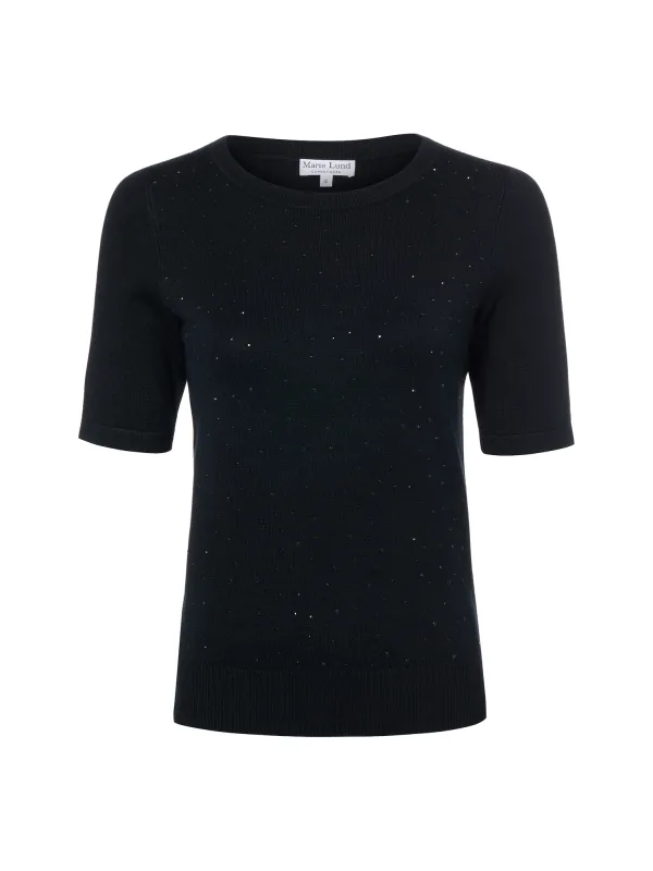 Design: Geribbelde kraag, Geribd ceintuurtje; Materiaal: Knitwear; Halstype: Ronde hals; Motief: Effen; Details: Sierstenen; Extra's: Glitterend, Voelt zacht aan; Pasvorm: Slanke pasvorm; Armlengte: Halve mouw; Lengte: Normale lengte