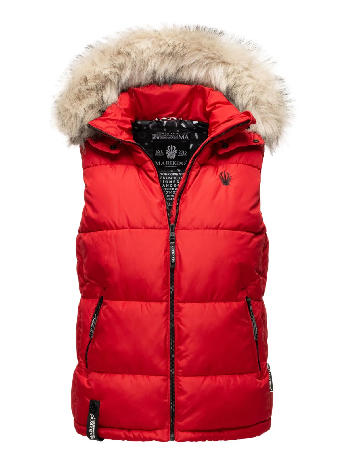 Marikoo dames gewatteerd vest – Eisflöckchen met capuchon & imitatiebontkraag