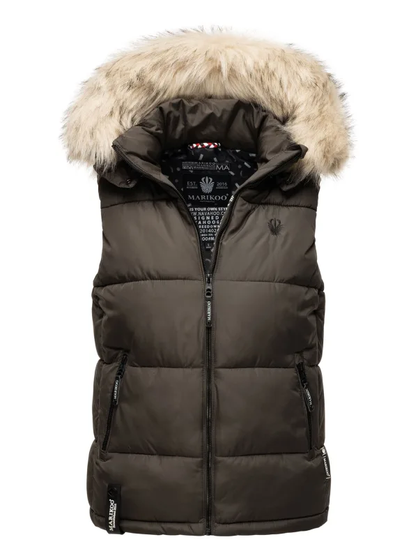 Marikoo dames gewatteerd vest Eisflckchen met capuchon & imitatiebontkraag