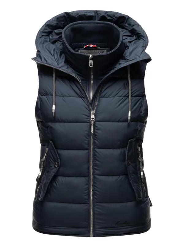 Marikoo dames gewatteerd vest – Taisaa, licht met capuchon & snackvak