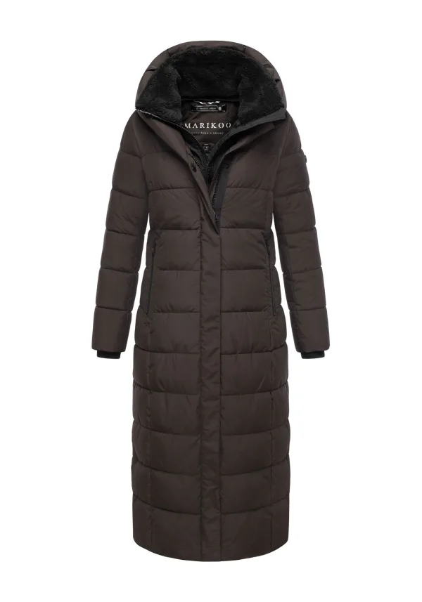 De Marikoo Pakoraa gewatteerde mantel combineert tijdloos design met praktische details – ideaal voor koude winterdagen. De extra lange pasvorm beschermt betrouwbaar, terwijl de hoge kraag, vaste capuchon en afneembare teddy kraag extra comfort bieden. Bewegingsslits met drukknopen, een elastische tailleband en een tweewegrits met verborgen knoopsluiting zorgen voor draaggemak en een vrouwelijk silhouet. Met warme buitenzakken, twee binnenzakken en subtiele logo-accenten. Verkrijgbaar in 10 kleuren en maten S–5XL. Materiaal: Buitenkant/voering/vulling 100% polyester.