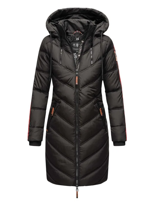 Marikoo dames gewatteerde winterjas – Armasa, lang met capuchon & teddybont voering